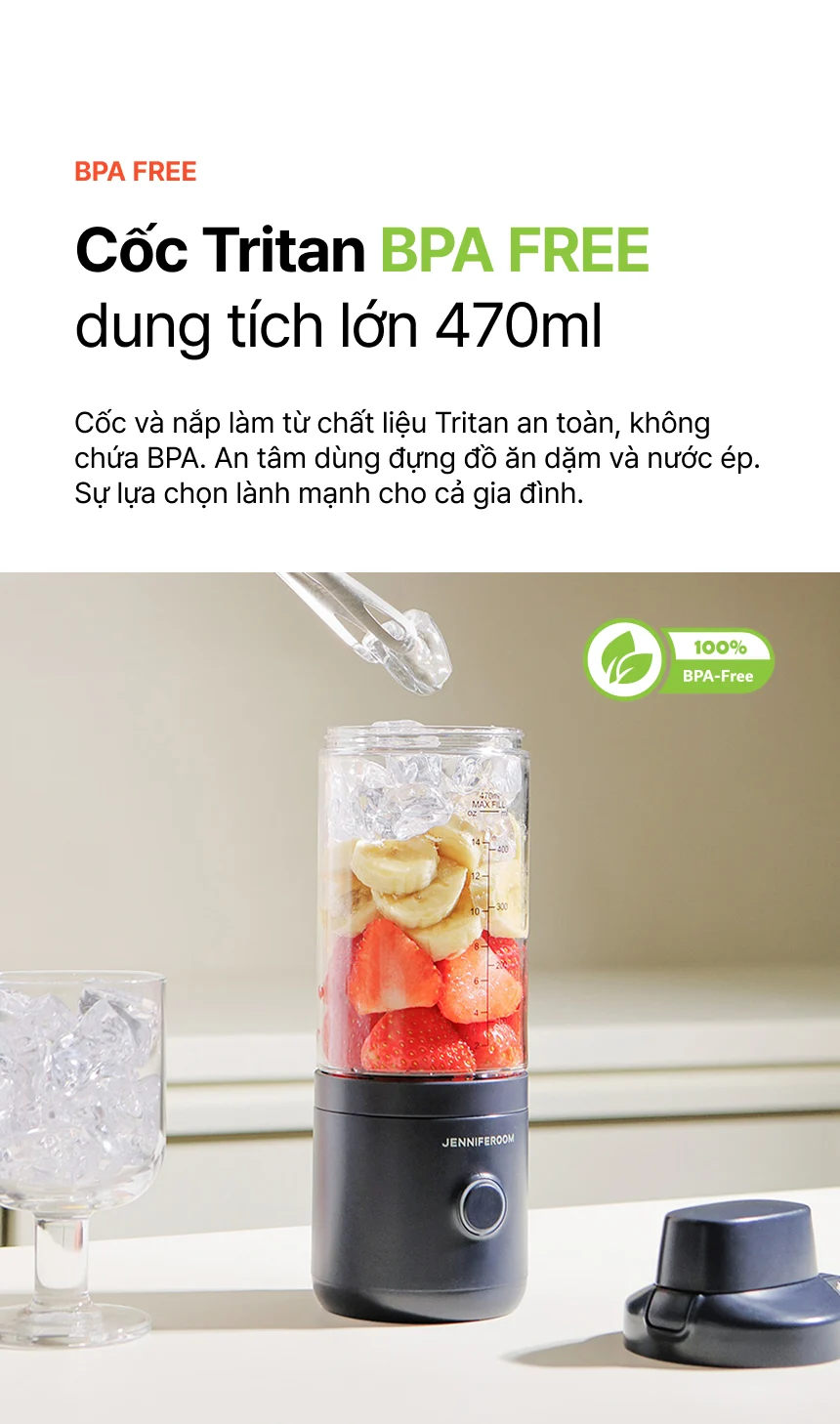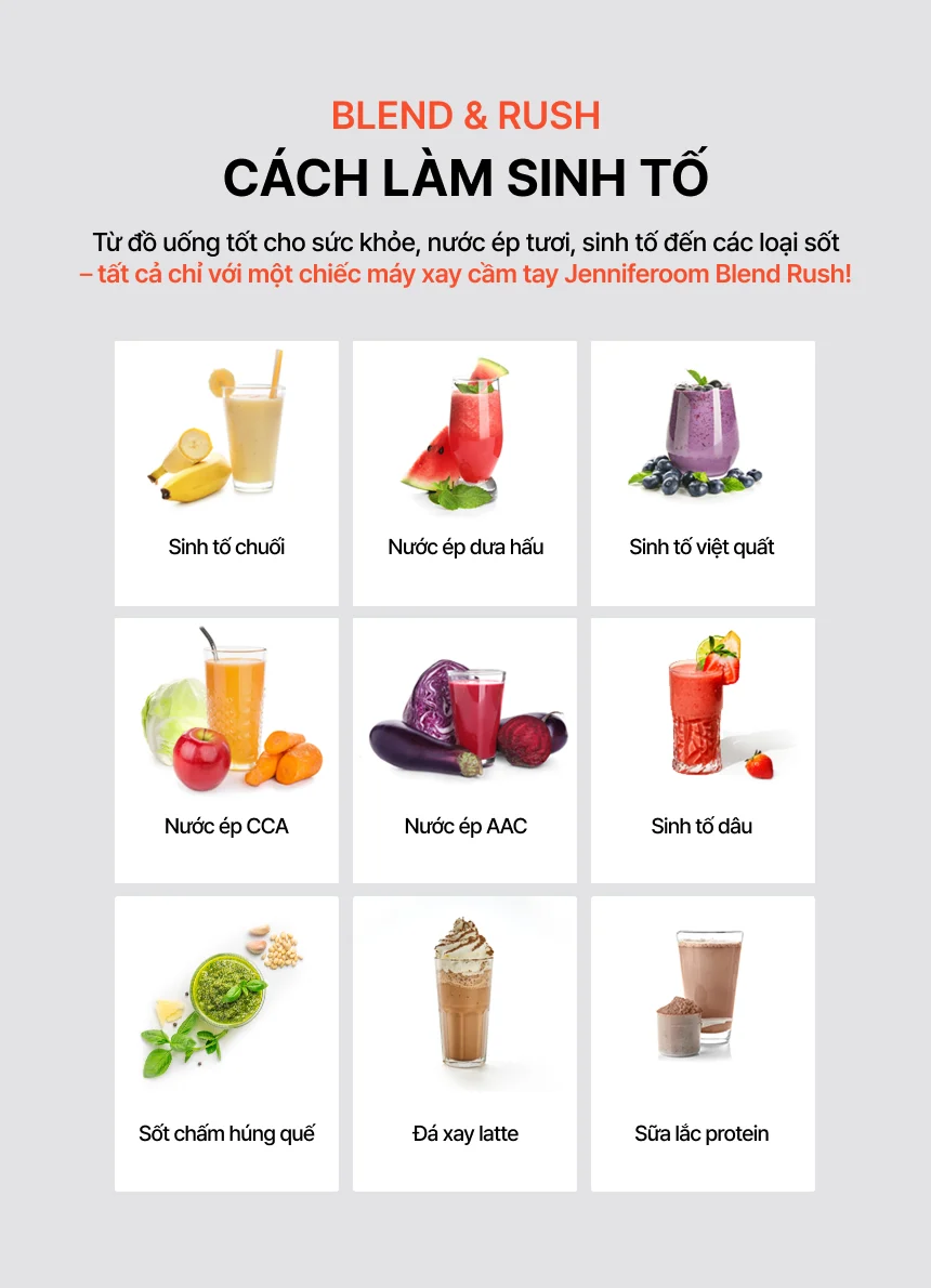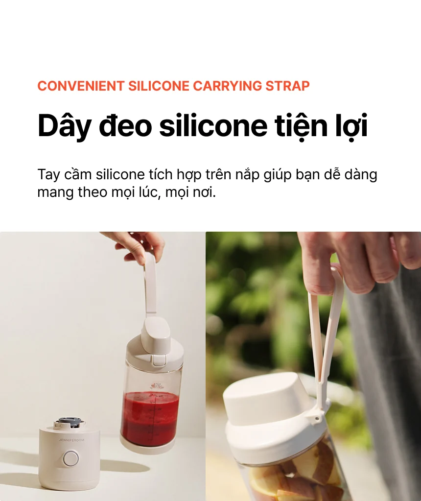 JRK-BLP101OG - Máy xay sinh tố cầm tay Jenniferoom Portable blender DC 7.4 V, 75 W, 2000 mAh x 2, 470 ml - Màu cam