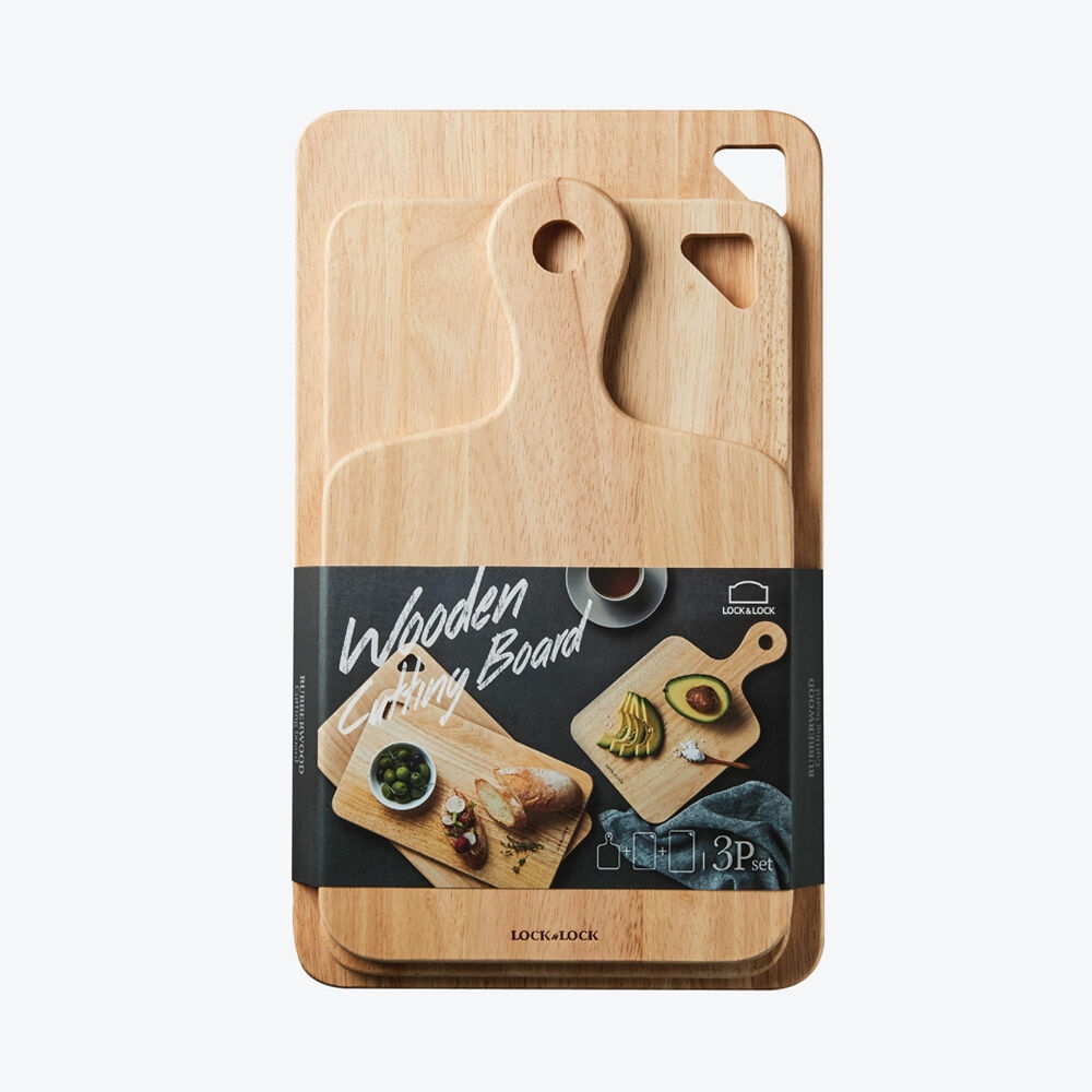 LWC001S3 - Bộ 3 thớt gỗ cây cao su (2 thớt hình chữ nhật + 1 thớt ping pong)